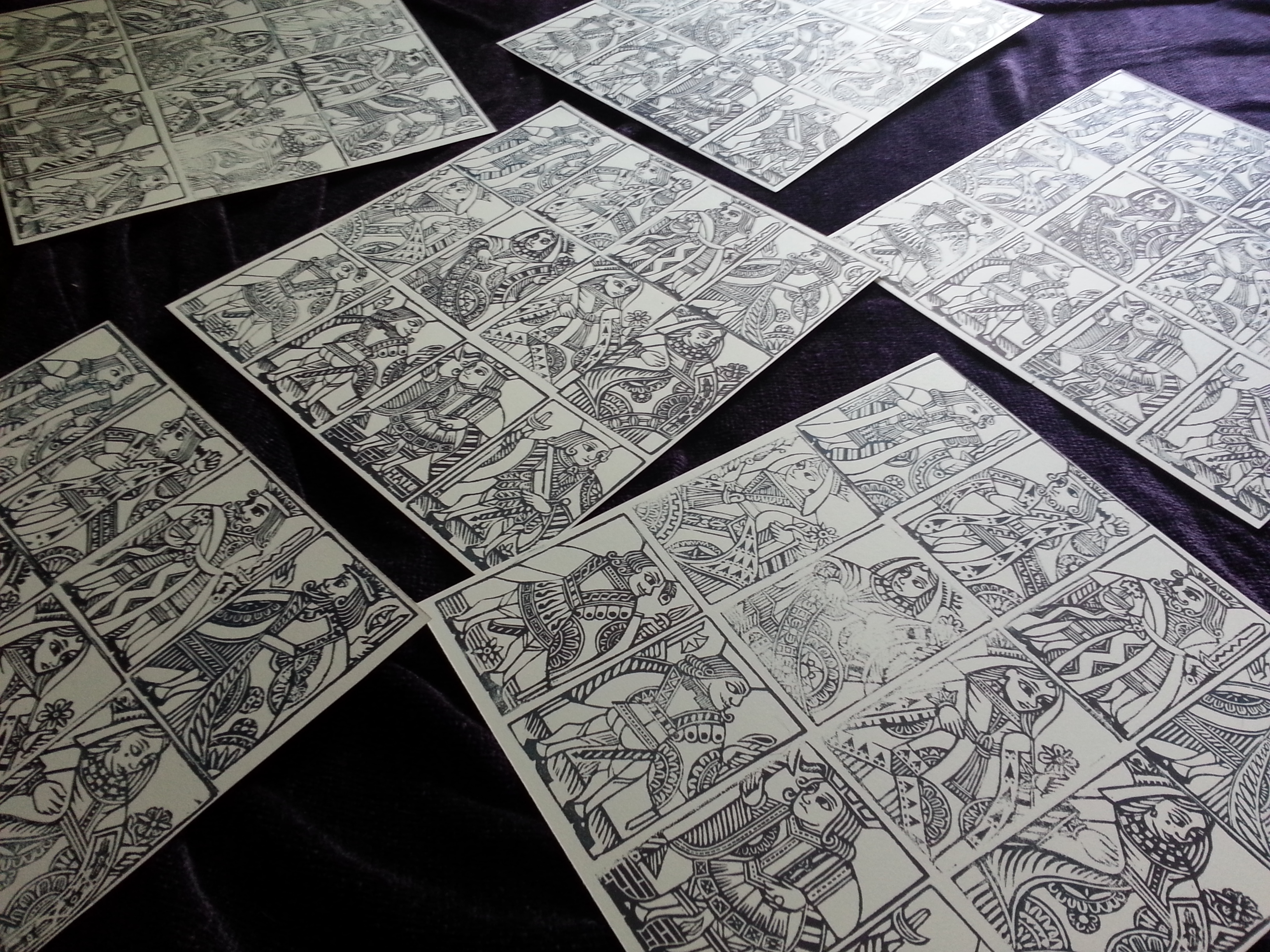 Xylographing English playing cards in my kitchen. Rhythm is good here.