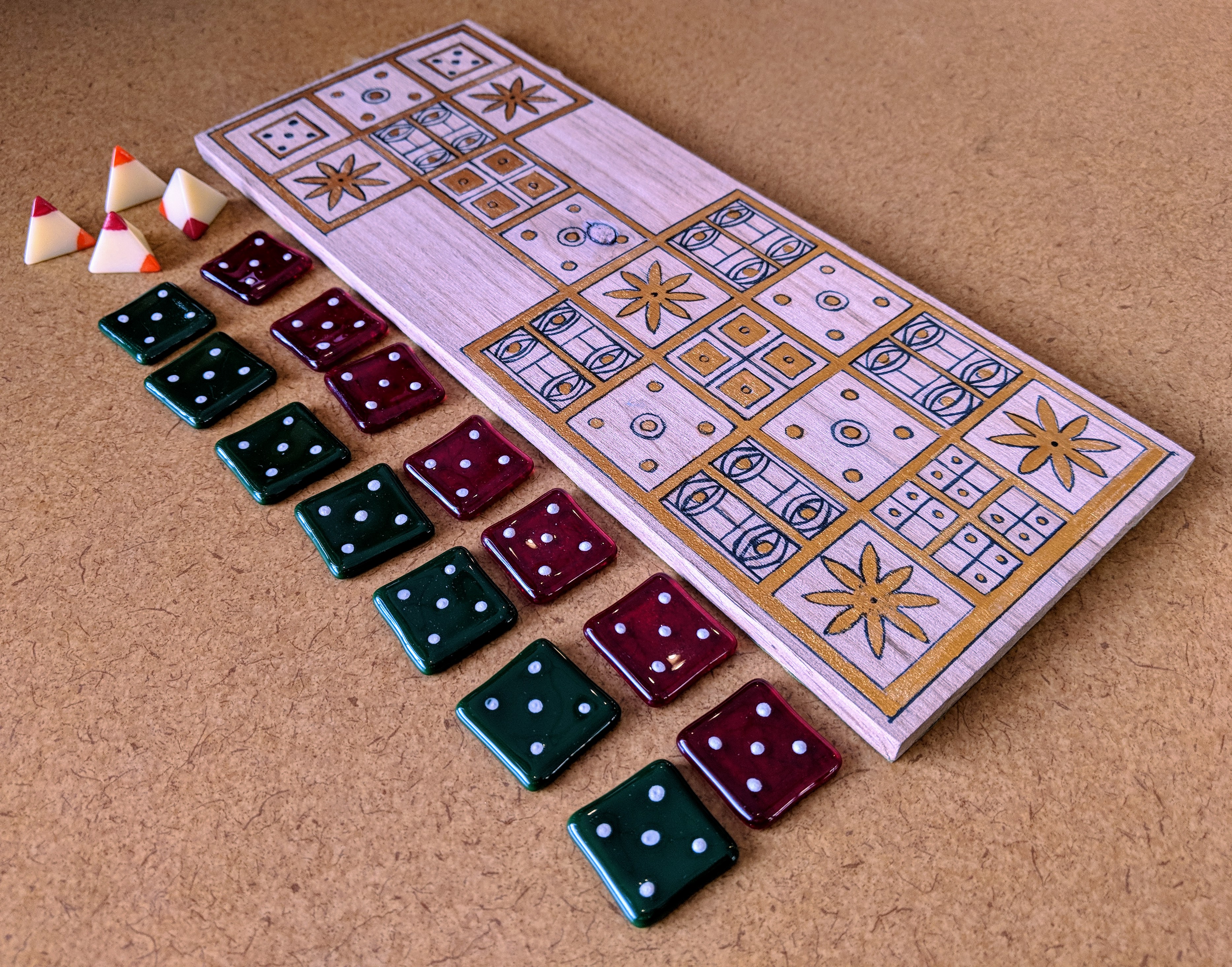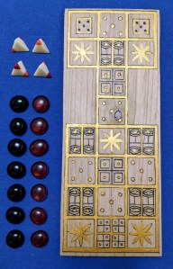 Oldest known Twenty Squares specimen layout and dice, pre 2600 BCE.